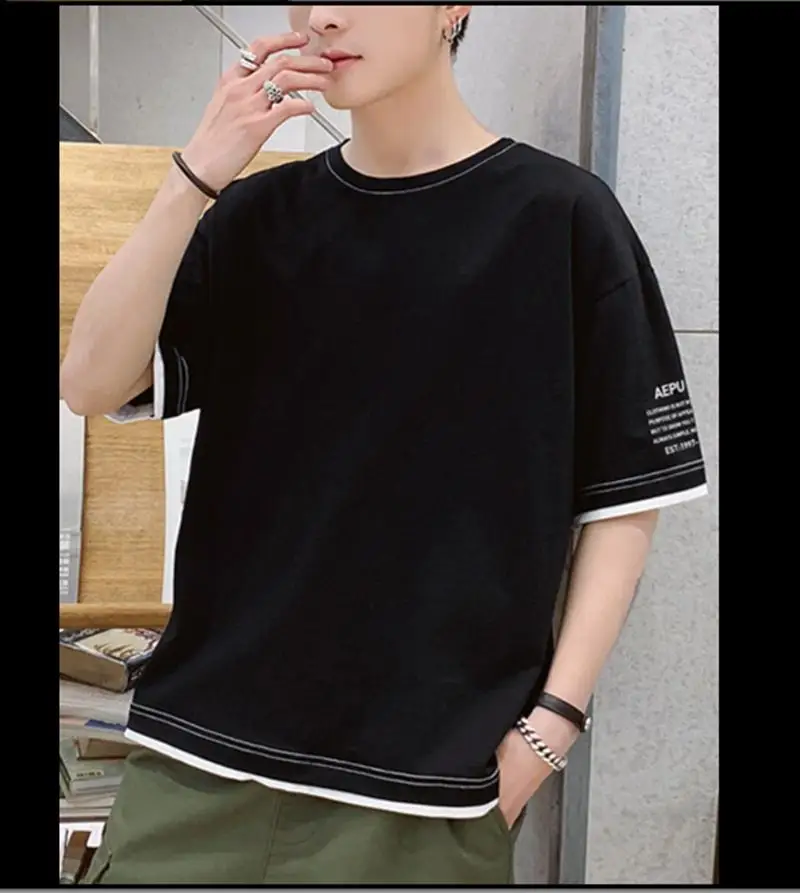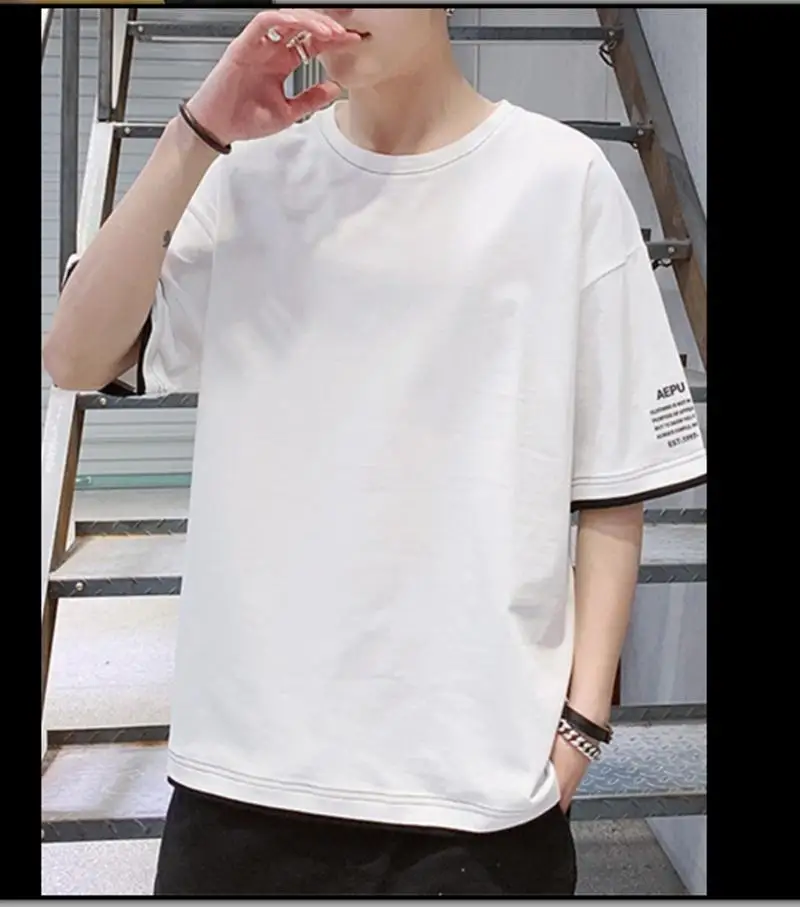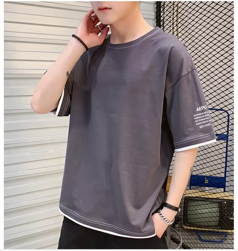 Product Name: T Shirt a manica corta da uomo estate vento la nuova ondata di uomini di metà di modo del manicotto del corpo la cui popolare logo allentato del cotone degli uomini di jack