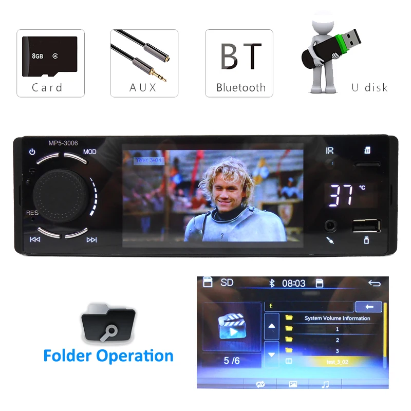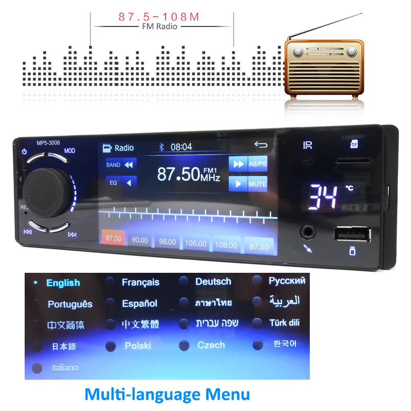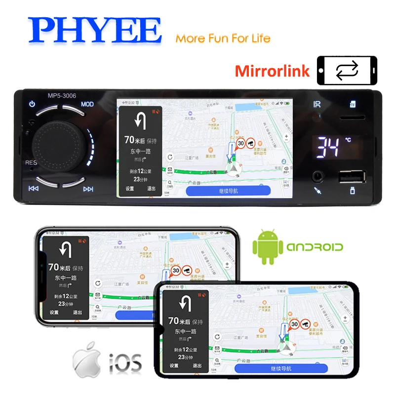 Product Name: Bluetooth Autoradio 1 Din Collegamento Specchio 4 \"Touch Screen MP5 Lettore Video USB di TF Vivavoce A2DP Stereo Sistema unità di testa PHYEE 3006