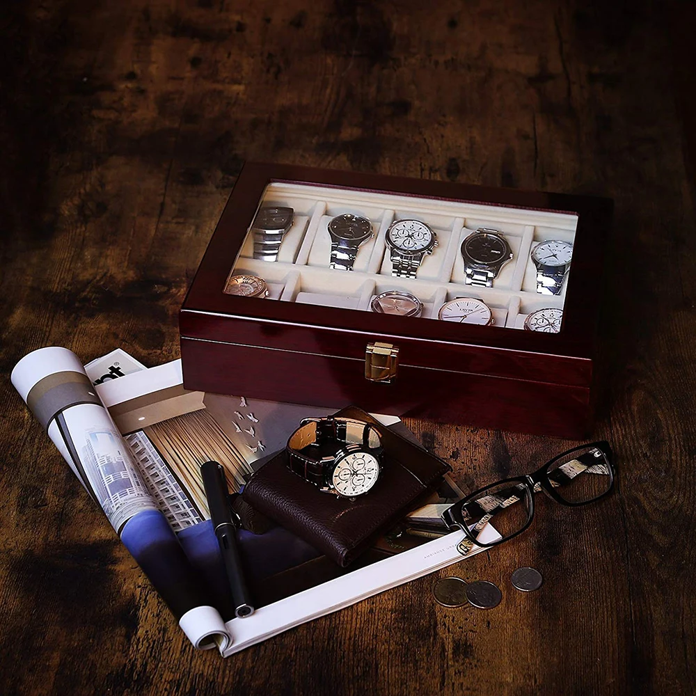 Special Offer porta orologi Di lusso In Legno Contenitore di Vigilanza Della Vigilanza Holder Box Per Gli Orologi Da Uomo Superiore di Vetro Dei Monili Organizer Box 2 3 5 12 Griglie orologio Organizer Nuovo D40 Discount 40% Today!