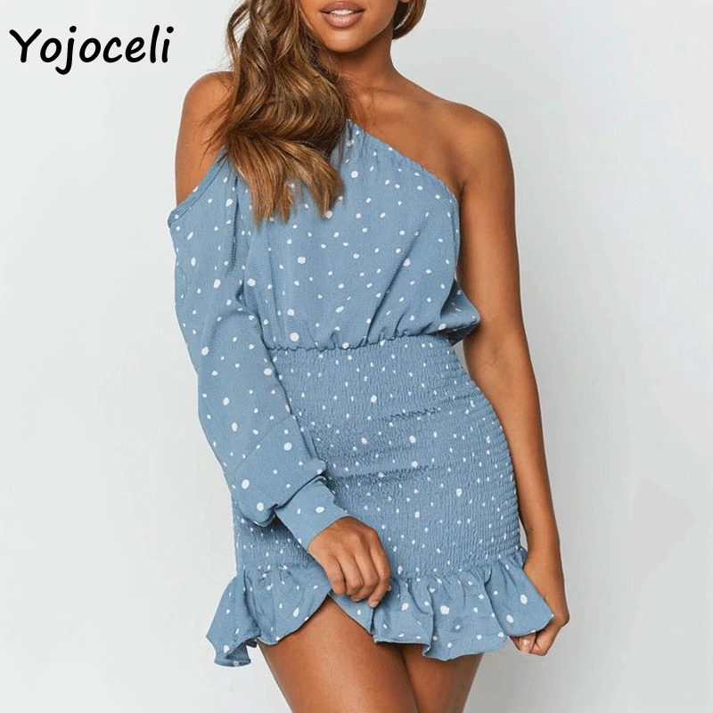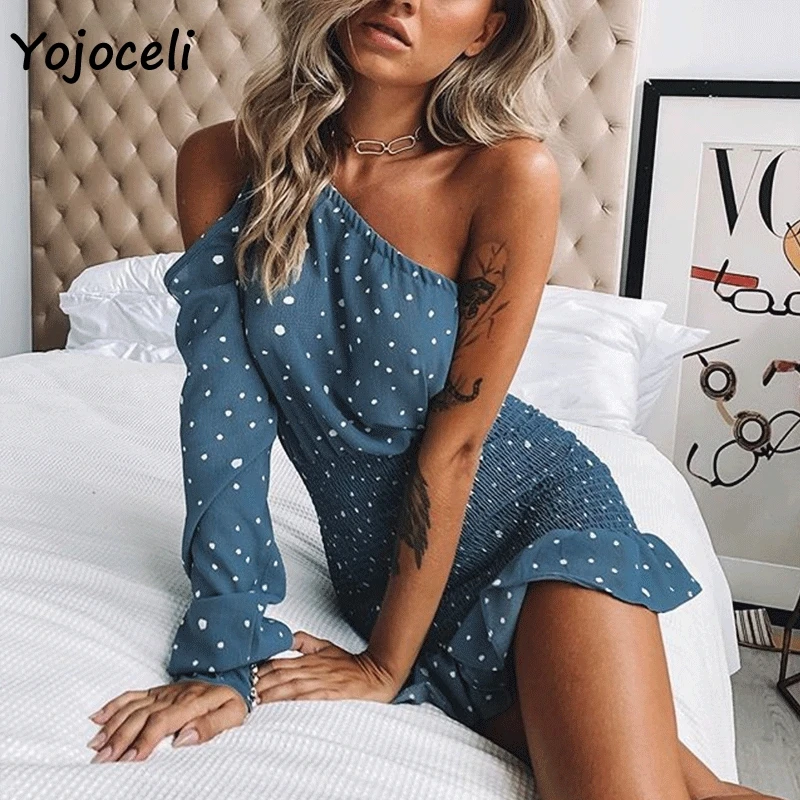 Product Name: Yojoceli sexy del randello del partito vestito dal puntino delle donne di una spalla ruffle mini vestito aderente donna abiti