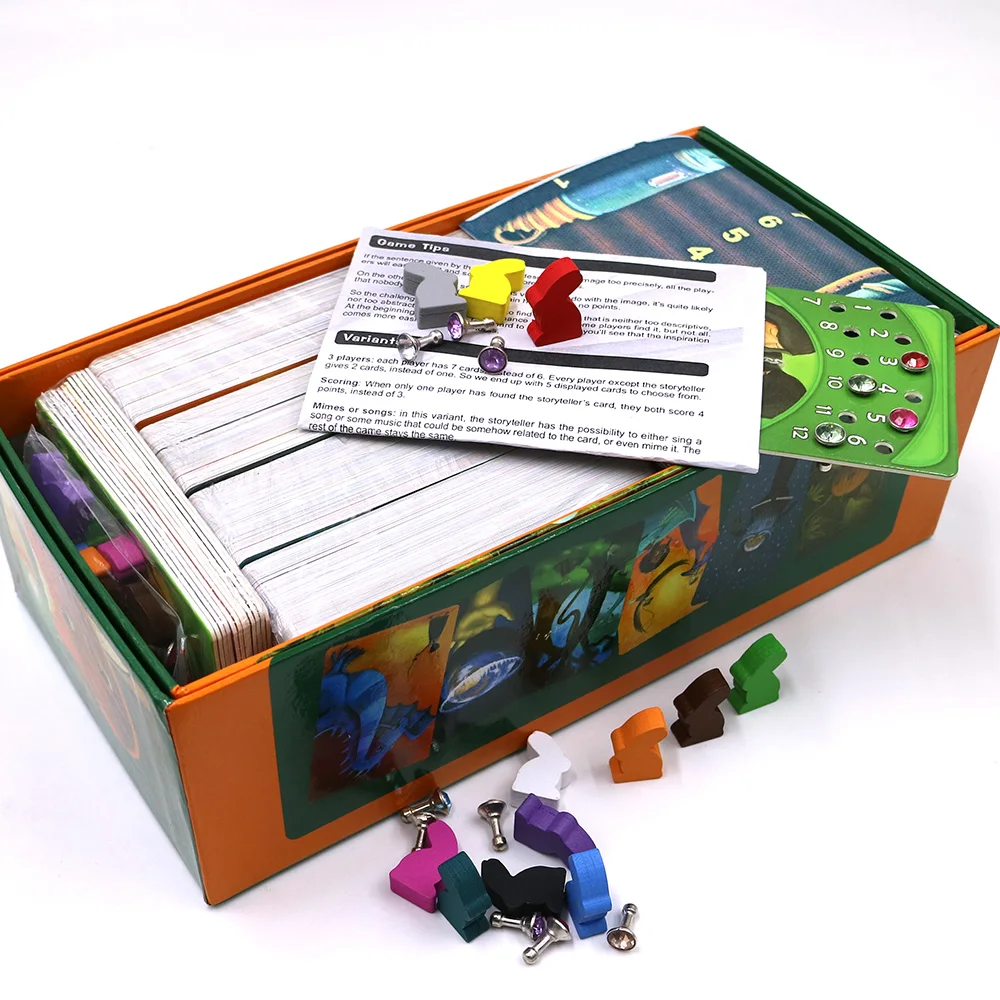 Product Name: Obscure Dixit gioco deck 1 + 2 + 3 + 4 + 5 + 6 + 7 + 8 carte di gioco di legno coniglietto Russo e Inglese regole per dropshipping