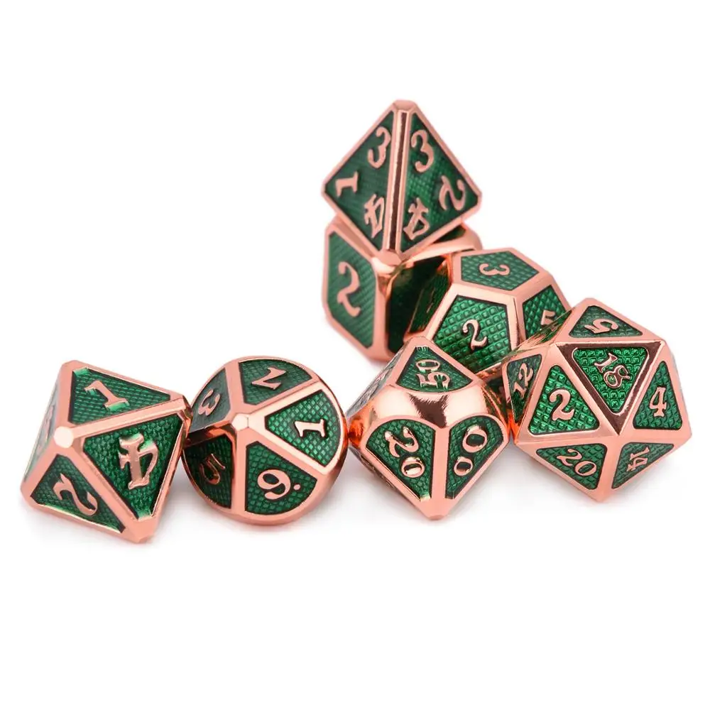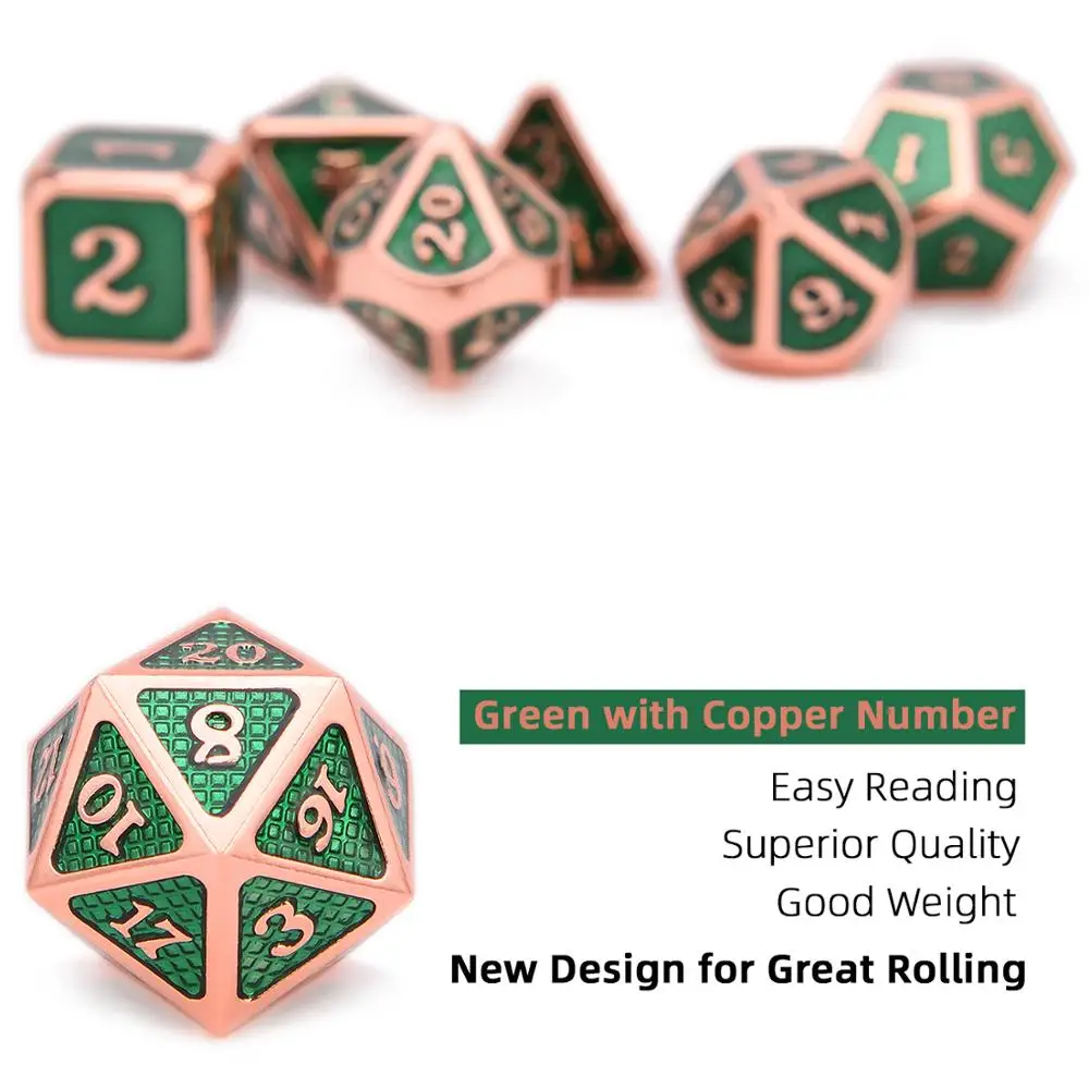 Special Offer DnD Metallo Dadi Verde con Rame D4 D6 D8 D10 D12 D20 7 pz set con Coulisse Pouch per Giochi di Ruolo giochi RPG MTG Giochi Da Tavolo Discount 0% Today!
