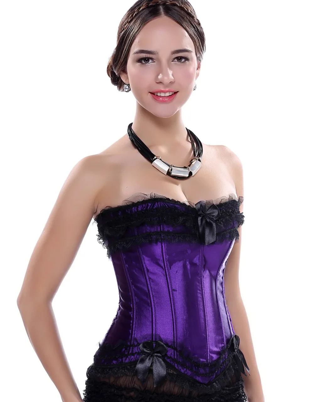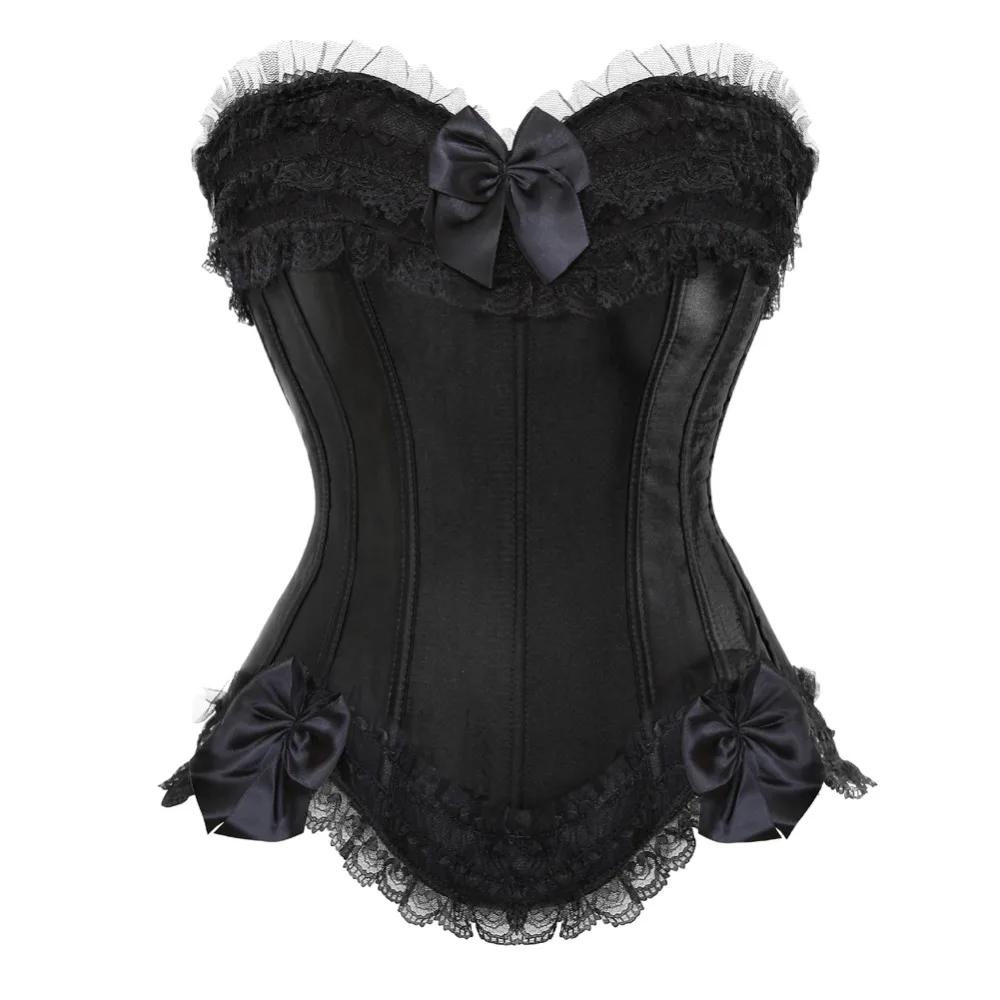 . (0% Off) Offerte Sexy Raso di Overbust Top Corsetto di Pizzo Bowknot Decorato Clubwear Showgirl Shaper Del Corpo Più Il Formato S 6XL Economici Prezzo Online.