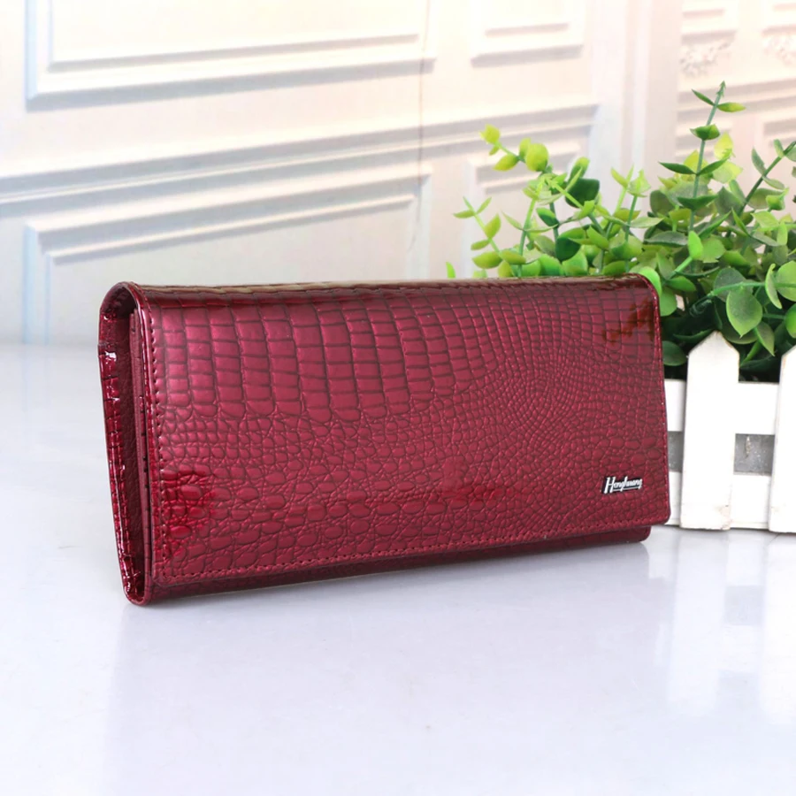 Special Offer Portafoglio delle donne del cuoio genuino di lusso di marca delle donne portafogli lungo in pelle di mucca borse delle signore del coccodrillo femminile della borsa della moneta Discount 64% Today!