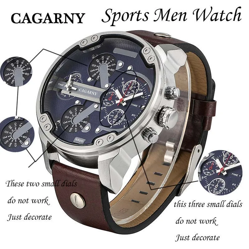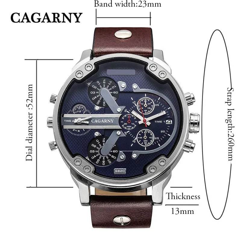 Product Name: Di lusso di Marca del Quarzo Degli Uomini Orologio Da Polso Orologio Sportivo Doppio Movimento CAGARNY Uomo casual Orologi Relogio Maschio Relojes Orologio Da Uomo