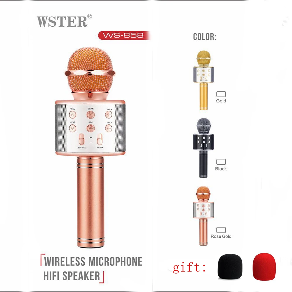 Product Name: Originale Wster WS858 di Modo Senza Fili di Bluetooth A Condensatore Magic Karaoke Microfono Del Telefono Mobile Player MIC Altoparlante Registrare Musica