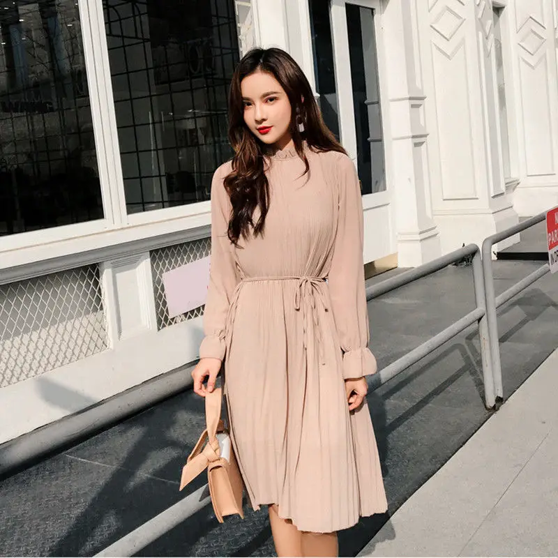 Product Name: Estate Fiori di Stampa Delle Donne Vestito Kawaii Coreano casual Manica Lunga A Metà Polpaccio Vestito Da Partito Vintage Abiti Carino Abbigliamento