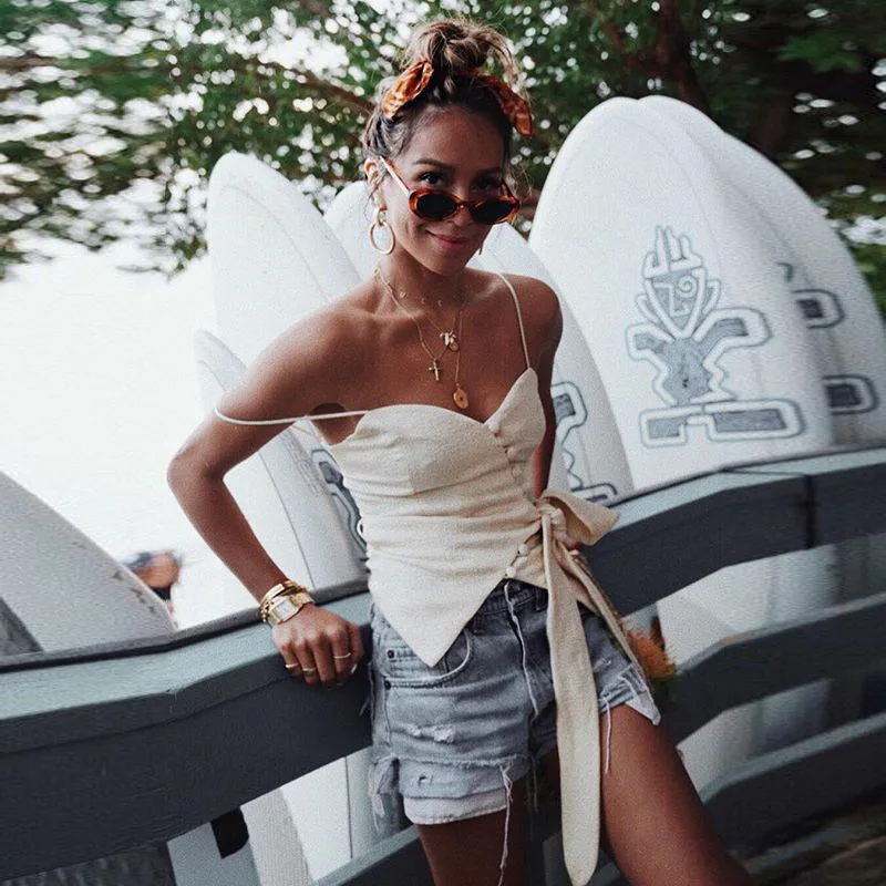 . (42% Off) Comprare Crittografia Elegante Bianco Senza Maniche Sexy Canotta Crop Top per le Donne Della Spiaggia di Estate casual Femminile Magliette e camicette Button Bow Signore Della Maglia Economici Prezzo Online.