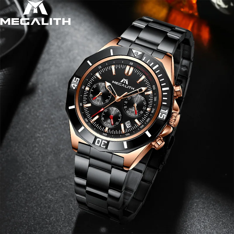 Product Name: Relogio Masculino MEGALITH Vigilanza Degli Uomini di Sport Militare Impermeabile Orologio Al Quarzo In Acciaio Inossidabile Luminoso Cronografo Orologi Da Polso
