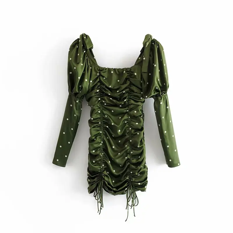 Product Name: Di modo di Nuovo Autunno Per Amore Limoni Davis Mini Vestito delle Donne Piazza Collo Manica Lunga Su Misura In Tessuto di Alta Qualità di Estate vestito