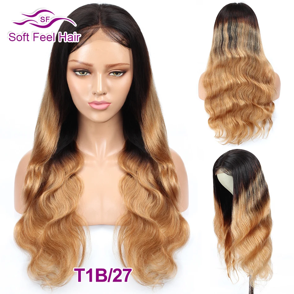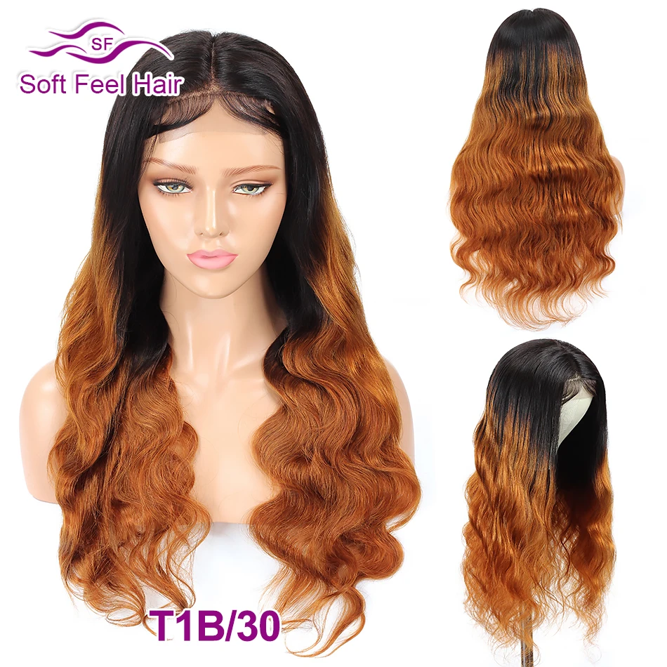 Special Offer Soft Feel Hair 4x4 Veletta nella chiusura Parrucca Bionda Ombre Chiusura Dei Capelli Umani Parrucche Per Le Donne Remy Brasiliano Dell onda Del Corpo Parrucche Medio Rapporto Discount 58% Today!